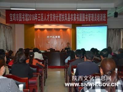 为了发挥县级公共图书馆在县域公共文化服务体系建设中的作用,积极开展扶风县公共图书总分馆制工作,为使广大基层农家书屋管理员熟悉图书管理的基本知识,增强服务意识,提高服务质量,实现图书管理工作规范化,吸引更多群众走进农家书屋,利用好基层服务点,由扶风县图书馆联合宝鸡市图书馆共同举办为期两天的农家书屋管理员培训班。