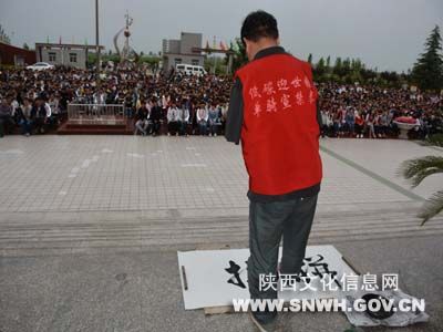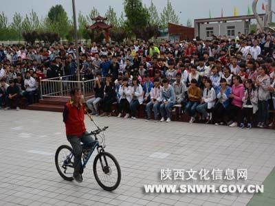 4月22日,扶风县图书馆邀请无臂青年王宏武,义务给法门高中3200名师生进行“向困难挑战”励志报告