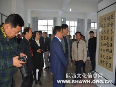 参加今天开幕式的领导有:县委常委、宣传部长刘新龙,县人大副主任张宏礼、扶风县政协副主席颜琼峰,县文化广电局副局长刘建斌,县文化馆馆长王斌,县图书馆馆长杨萍,县书法协会主席杨昌禄。