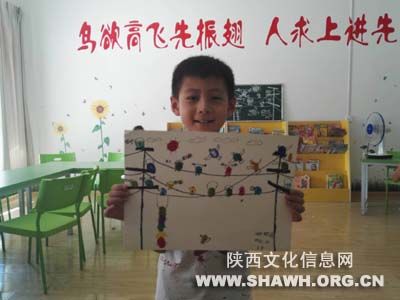 今天给孩子们展示的是电线杆上的小小鸟,王老师耐心细致的一步步给孩子们讲解,鼓励孩子们发挥想想力,瞧!有在电线上听音乐的小鸟、有举扛铃的、还有思考发呆的、哈哈还有一个打瞌睡的,真有点替它担心,居然还有在电线上荡秋千的毛毛虫。孩子们的想像力真是奇特、丰富。创意儿童手指画作为少儿绘画的一种表现形式,更能让孩子充分地表达自己的内心世界,使儿童借绘画表现、舒展自己内在的意愿和情感,从而培养孩子健康的情感世界和陶冶美的情操。