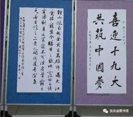 扶风县举办的本次书画展共收集了来自全县(含西安、宝鸡、杨凌、岐山、武功、眉县等部分地区扶风籍书画家)书画作品120余幅。经过初选、专家评审等程序筛选优秀作品65件展出。入展作者中,年龄最大者83岁,年龄最小者仅有10岁,这充分反映了该县书画事业蓬勃发展,后继有人的良好态势。这是扶风人民群众文化生活中的一件大事,也是该县喜迎十九大、欢度国庆中秋双节、营造喜庆热烈、欢乐祥和、团结奋进氛围。