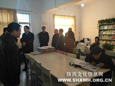 2017年11月24日下午,省文化厅副厅长李全虎,省艺术馆馆长助理、研究馆员穆平潮,省文化厅公共文化处主任科员彭李,省社科院文化研究所副研究员许定国,省图书馆财务科科长都睿一行在市文化广电新闻出版局副局长陈少峰,县政府副县长郭小军,市文化广电新闻出版局艺术科科长徐小明,县文广局局长王春让等陪同下,来扶风县图书馆就免费开放服务情况进行检查。
