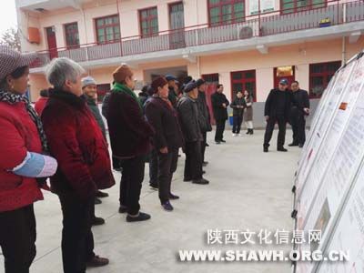 2017年12月6日,扶风县图书馆走进城关八岔村,开展《掌声聚民心 开启新时代》学习十九大报告图文展活动。八岔村组织村委班子成员、党员干部、群众现场观看十九大报告图文展,八岔村村书记淮天兴并对部分内容给群众做了详细讲解。