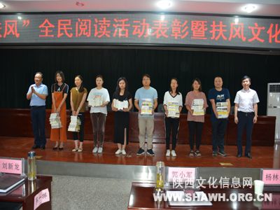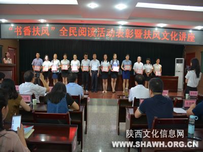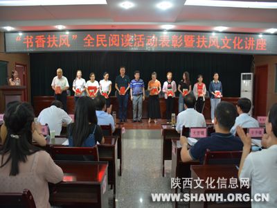 本次活动由中共县委宣传部、县文旅局、县文联主办,扶风县图书馆承办。县文化旅游局局长王春让宣读了《关于表彰“书香扶风”全民阅读活动先进单位、先进学校、先进家庭的决定》;参加会议的领导分别向表彰的先进颁发了奖品证书。杨林生宣读了《“书香扶风”全民阅读推广人(20人)名单》并向他们颁发了证书。田敏娟等朗诵了美文《做一个快乐的读书人》。宝鸡炎帝研究会和宝鸡周秦文化研究会会长、研究员霍彦儒以《坚定文化自信,重塑扶风文化》为题进行了扶风文化讲座。