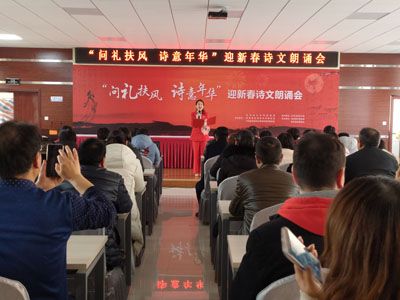 为了丰富扶风城乡群众节日期间的精神文化生活,弘扬传承中华优秀传统文化,艺术再现扶风深厚的历史文化内涵,推进全民阅读活动深入开展。2020年1月17日,由扶风县文化和旅游局、扶风县文学艺术界联合会、中共扶风县非公有经济组织委员会主办;扶风县图书馆承办;扶风县作家协会和扶风县朗诵协会协办的“问礼扶风 诗意年华”扶风县迎新春诗文朗诵会在扶风县市场监督管理局六楼会议室举行。