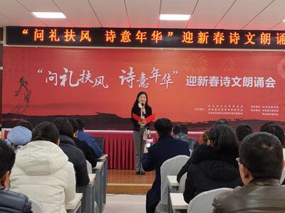 来自全县各行各业的17名诗文朗诵者及爱好者200余人齐聚一堂,用诗文朗诵的形式喜迎2020新春的到来,活动在李晓燕、孙晓伟朗诵的《美丽中国》中拉开的帷幕,宁维娜朗诵的《仰望扶风》、曹晓妮朗诵的《美丽新扶风》、强宁作词并朗诵的诗歌《唱响扶风最强音》、崔军宁、兰亚静朗诵《扶风春天的花》,展现了扶风70年的奋斗不息,70年的风雨兼程,造就了扶风70年的辉煌,扶助京师,以行风化,历史在扶风留下了瑰丽的文化遗产;田燕妮朗诵的《我希望》、段宏军朗诵余秀华的诗《我爱你》、王明侠、古泽坤朗诵的《雕像?红杜鹃》等一篇篇或诗意抒情、或慷慨激昂的诗篇将将现场气氛推向了高潮,让大家感受到了朗诵的独特魅力,也为本次朗诵会画上了圆满的句号。