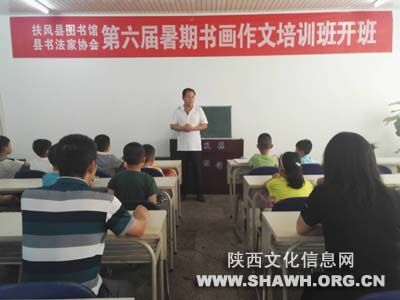 2017年7月12日,扶风县图书馆、县书法家协会第六届暑期书画作文培训班开班,此期培训班以“培养兴趣 因村施教 提高技能 启迪想象”为宗旨,招收爱好书法、绘画、作文的年满6周岁以上中小学生及成年爱好者。书法主要讲授楷书的基础知识及晚临习技巧,有书法基础的,授以深层次的书法知识;绘画学习素描、儿童画;作文辅导写作、诵读经典、灌输诗词联语基础知识,启迪想象。书法、作文由中华诗词文化研究所原副秘书长、宝鸡市榜书家协会副主席、扶风县书法家协会常务副主席翟功印主讲。绘画由美术院校专业人士主讲。愿孩子们在图书馆度过一个充实、有意义的假期。