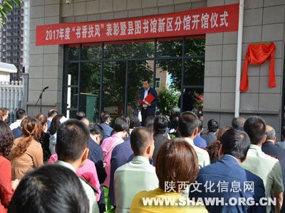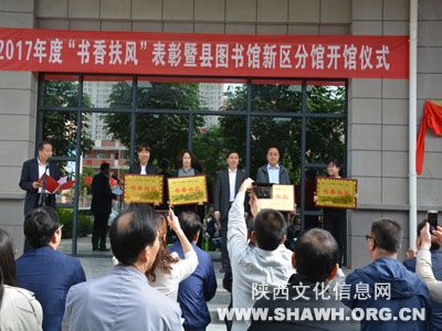 为了切实贯彻国家新闻出版广电总局印发的《关于开展2018年全民阅读工作的通知》精神,深入学习贯彻习近平新时代中国特色社会主义思想,加快建立全民阅读推广服务体系,推动新时代全民阅读工作更加深入、全面、科学发展,2018年5月23日,由中共扶风县委宣传部、扶风县文化广电局、扶风县教育体育局、扶风县文明办共同举办的扶风县2017年度构建“书香扶风”总结表彰暨县图书馆新区分馆开馆仪式在分馆隆重举行。