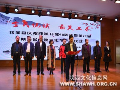 在庆祝和启动仪式上,县政府副县长郭小军致词、扶风高中学生代表宋岩发言。县委常委、县武装部政委杨根民宣布扶风县庆祝改革开放40周年暨第六届陕西省阅读文化节正式启动。嗣后,文艺家和文化爱好者分别朗诵了《阅读赋》、笛子独奏《骏马奔驰保边疆》合唱《天耀中华》、朗诵《做一个快乐的读书人》、口技表演、《秦腔曲牌》、旗袍秀《甜美的回忆》。启动仪式在一片掌声中结束。