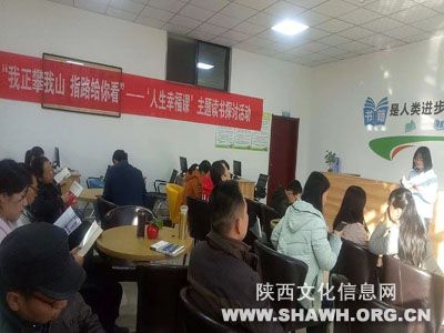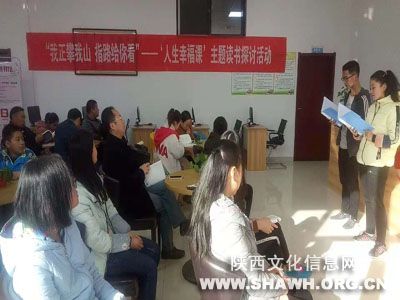 扶风县图书馆与常青藤青年志愿者团队共同发起的以共建“博睿青藤,书香扶风”为宗旨,推动全民阅读为目的,面向全体读书爱好者开放的长期免费公益项目。自2018年5月1日在老区图书馆成功举办第一期活动以来,在扶风县中学生群体及广大读书爱好者中掀起了又一波的读书热潮。2018年11月18日,第六期“我正攀我山 指路给你看”——《人生幸福课》主题读书探讨活动在新区分馆举行。