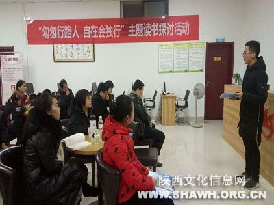 2019年元月6日下午,扶风县图书馆联合常青藤青年志愿者团队在扶风县图书馆新区分馆举行了 “博睿”公益读书会第七期暨“匆匆行路人 自在会独行”主题读书探讨活动。