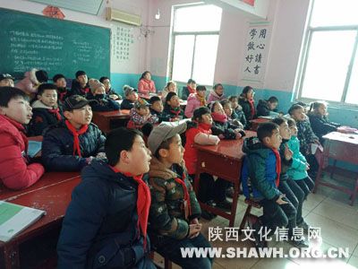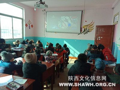 2019年1月10日,扶风县图书馆走进鲍迪教育托管中心,利用共享工程数字资源为这里午托的孩子播放《中华弟子规》之《新年到》。