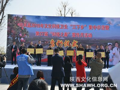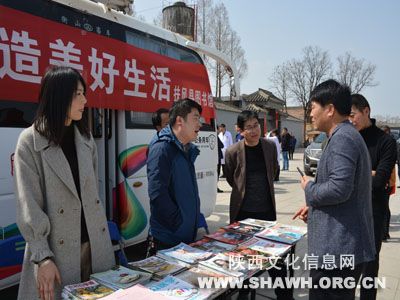 2019年3月20日,扶风县2019年文化科技卫生“三下乡”暨“首部励志数字电影《脱贫路上》”开机仪式在法门镇庄白村正式启动。现场,来自全县27家相关单位的320余名文化科技卫生工作者为千余名群众带来一场别开生面的科技、文化盛宴。扶风县图书馆积极参与到此次活动中。
